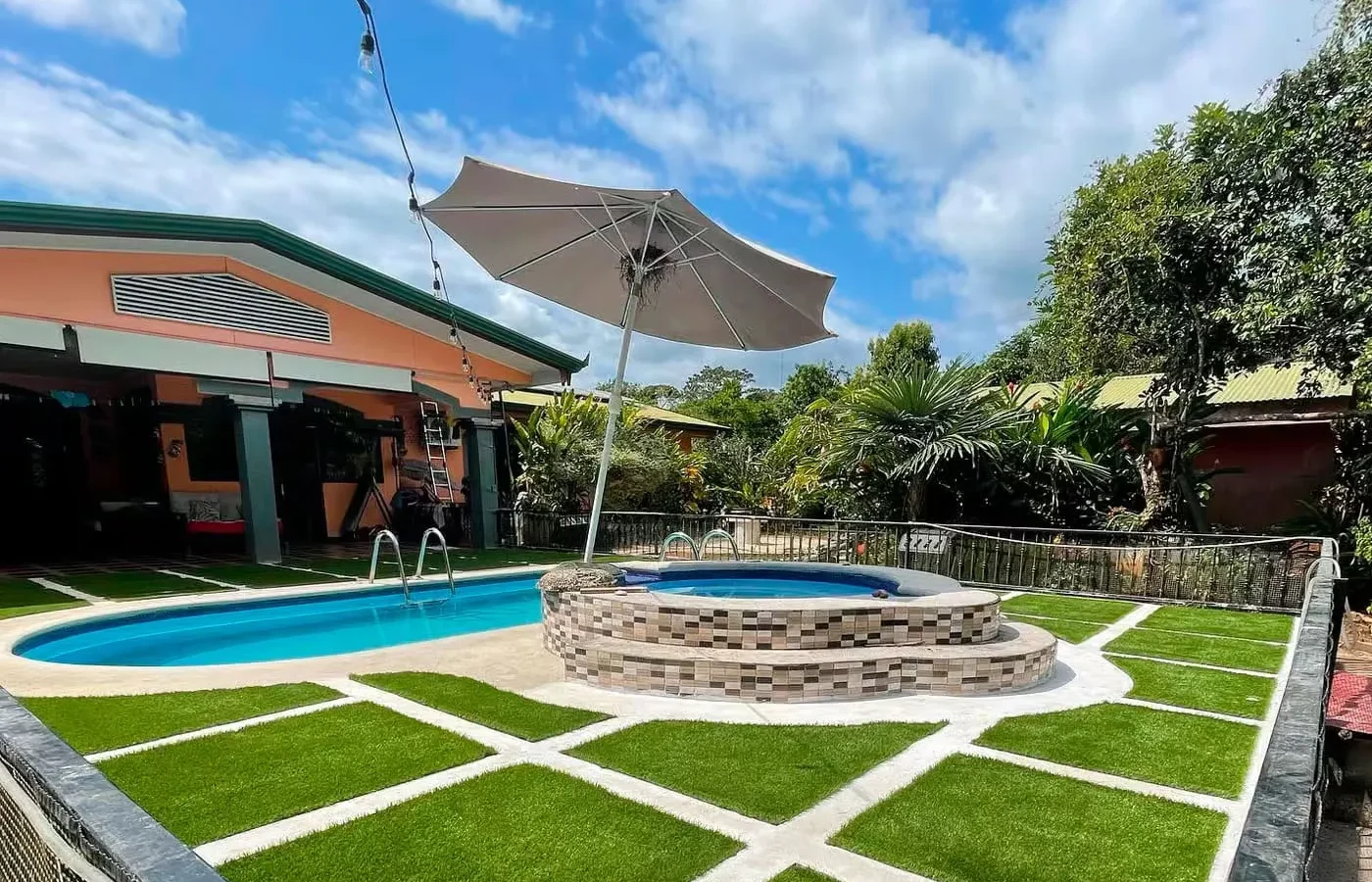 - Jardín verde todo el año, sin zonas secas ni barro.